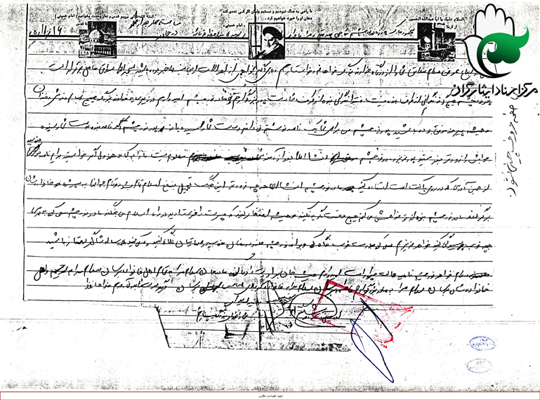 پدر و مادر عزيزم! اين فرزند گناه كار شما انتخابگر بوده و آن چه را كه انتخاب نموده ام برايتان باز مي گويم. از بين همه كتب، كتاب قرآن و از ميان رنگ ها، رنگ سرخ؛ از ميان مرگ ها، شهادت؛ از ميان استادان، حسين(ع) و از ميانرهبران، خمينى و از ميان دانشگاه ها، دانشگاه جهاد؛ از ميان رشتهها، بسيج؛ از ميان امت ها، امت مسلمان ايران و از ميان بهترين هديهها، جانم را انتخاب كرده و در راه رسيدن به الله فدا نمودم حال بنگريد اگر انتخاب من اشتباه بوده براى من گريه كنيد، ولى اگر صحيح بوده كه مطمئناً صحيح است براى من دعا كنيد كه خداوند رحمان قبولم كند و شاد باشيد تا دشمنان خدا و دينمان گريان شوند.»