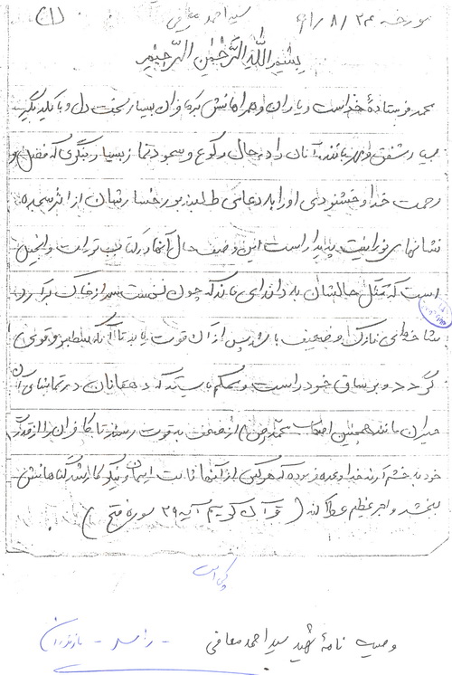 زندگي نامه دانشجوى شهيد سيد احمد معافى