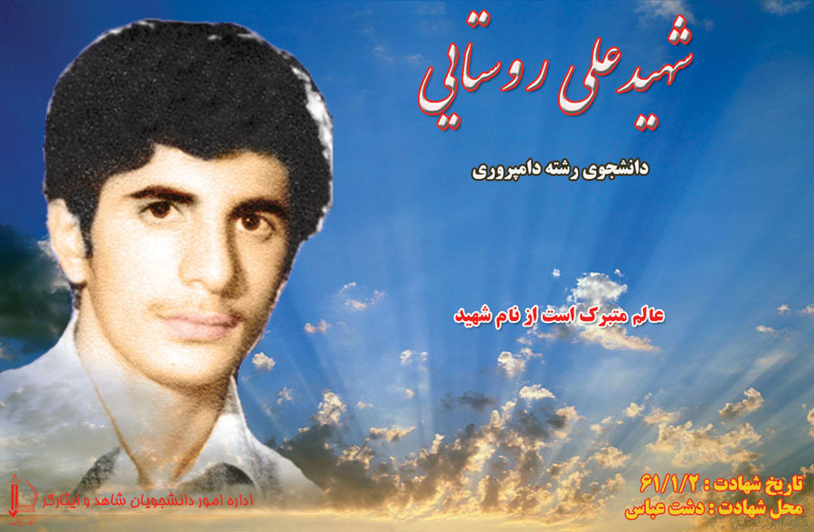 شهيد على روستايى در زمستان سال 1339 در شهر تهران متولد شد. دوران تحصيلات ابتدايى را با موفقيت پشت سر گذاشت و در حين تحصيل به فعاليت هاى جنبى از قبيل شركت در كلاس هاى عربى، احكام و تفسير قرآن نيز مىپرداخت. اين علاقهمندى به مسائل دينى از او انسانى پاك ساخت. راز و نياز عاشقانه او در هنگام عبادت، انسان را منقلب مىساخت. صداقت، رشادت، تقوا و توجه به علم از خصوصيات بارز اين شهيد بزرگوار بود و همين توجه او باعث شد تا با شركت در كنكور در رشته دامپرورى دانشگاه مشهد پذيرفته شود.