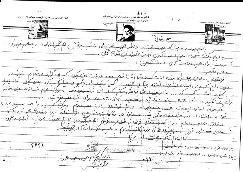 در سال 1359 و با شروع جنگ تحميلى با وجود سن كم، براى حضور در جبهه داوطلب گردید كه پذيرفته نشد، اما در سال دوم دبيرستان پس از گذراندن دوره آموزش نظامی براى مقابله با ضد انقلاب به كردستان اعزام گرديد. خود در نقل خاطرهاى نوشته است: «زمانى كه براى اولين بار قصد حضور درجبهه را داشتم با مخالفت مادرم روبرو شده و اصرارهاى مكرر من ثمرى نبخشيد تا اين كه شبى درخواب ديدم كه حرم مطهر امام رضا (ع) آتش گرفته و همه مردم براى كمك هجوم آوردهاند و من ايستادهام. يكى از رهگذران از من مىپرسد چرا ايستادهاى و من در پاسخ مىگويم: مادرم اجازه نمىدهد. وقتى اين خواب را براى مادرم تعريف كردم او اجازه عزيمت به جبهه را به من داد.»