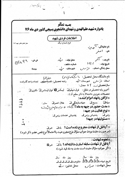 زندگي نامه دانشجوی شهید اصغر آروین